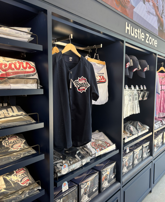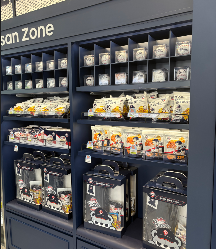 다양한 상품과 더불어 두산베어스만의 색깔을 입힌 CU X 두산베어스 플레그십스토어은 잠실새내에 위치하고 있다.